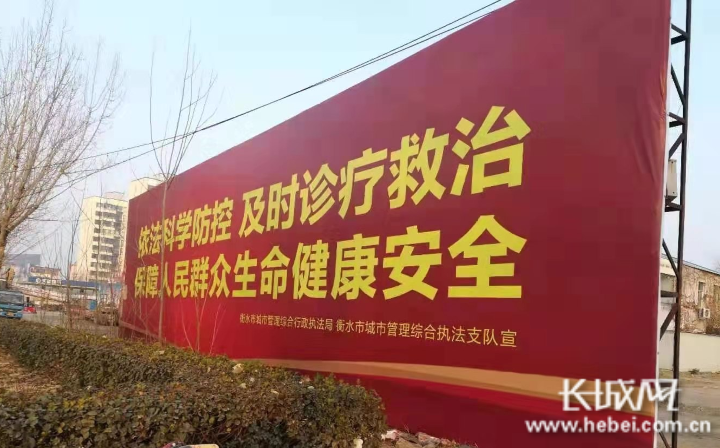 长城网衡水讯(记者胡竞文 通讯员 刘贺)为切实做好新型冠状病毒感染的肺炎疫情防控宣传工作,衡水市城市管理综合执法支队结合工作职责,在高速城市出入口、火车站广场及城市主干道重要点位,衡水市人民医院、四院周边以公益广告画面和标语条幅的形式进行社会宣传。