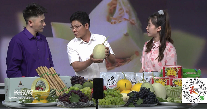 当晚,李信华、李瑞峰带来了蜜玲珑甜瓜、瑞红甜瓜、阳光玫瑰葡萄、熊蜂授粉西红柿、管栽麻山药、仇氏金丝杂面、鱼皮花生等20多种产品,现场试吃推介,把饶阳特产推荐给全国网友,让品质一流、营养丰富、价格实惠的饶阳特产走进千家万户。