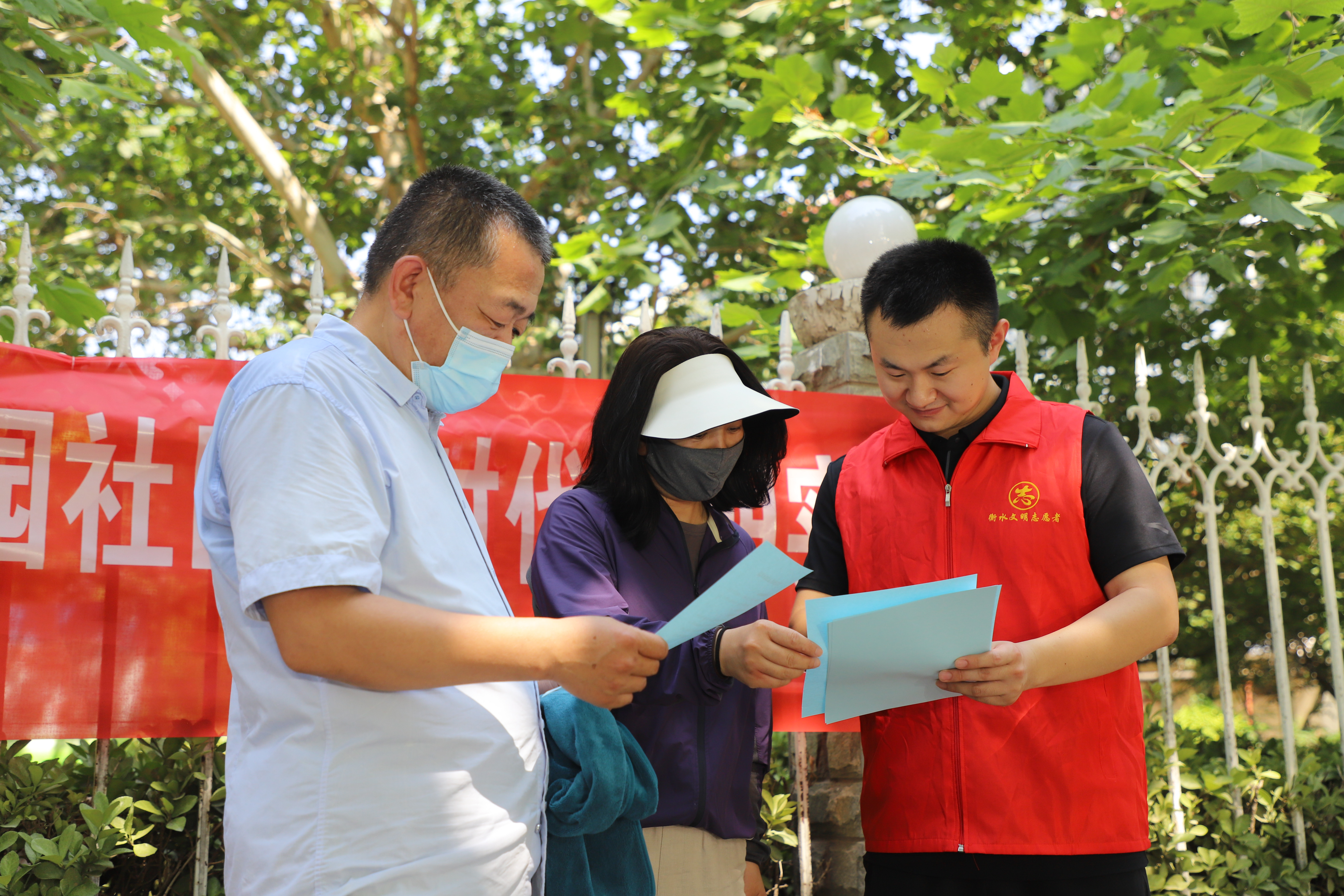 活动当日,尽管天气炎热,酷暑难耐,但志愿者们的热情依然高涨。“做好垃圾分类”“广大犬主遛狗要拴绳,大小便要及时清理”“保护环境、爱护花草”……河北省子牙河河务中心、中国建设银行股份有限公司衡水分行、水利部海委漳卫南运河邢衡河务局、中裕铁信交通科技股份有限公司的志愿者们手持扫帚、簸箕、夹子、铲子等工具,深入共建社区对地面垃圾、墙体污垢、楼道小广告及绿化带杂草、车辆无序停放等居住环境问题进行集中清理整治,并在小区居民中广泛开展文明养犬、文明交通、光盘行动等主题宣传活动,通过发放宣传手册、开展“垃圾分类小课堂”、有奖知识问答等方式,宣传普及《衡水市文明行为促进条例》《衡水市养犬管理条例》核心内容,增强居民环境保护意识,引导他们自觉将文明养犬要求和环保理念转化为日常行动。
