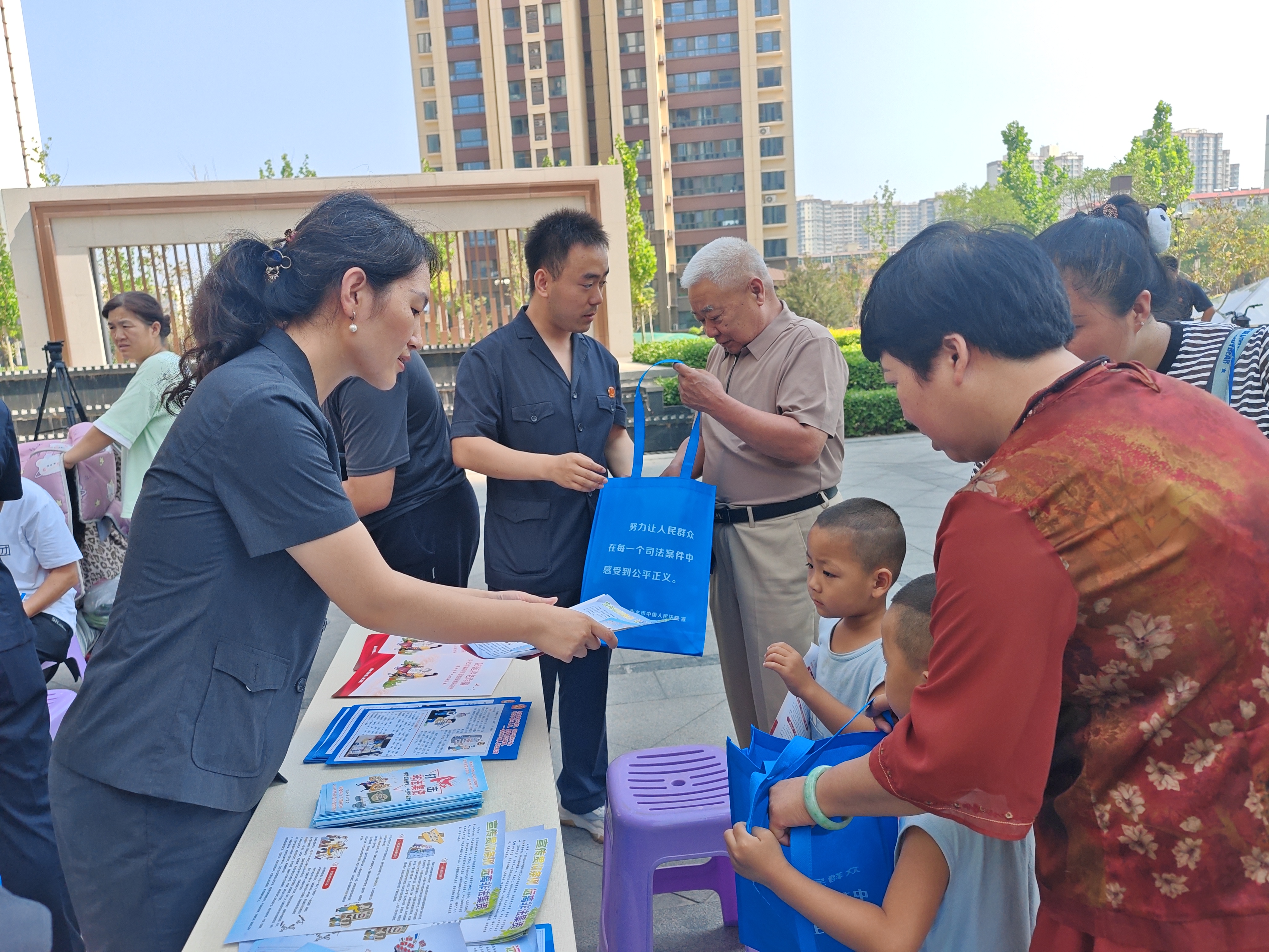 在桃城壹号小区A区,衡水市中级人民法院干警和桥东社区工作人员联合设立普法宣传和法律咨询展台,通过现场讲解、发放宣传手册等方式,向来往群众讲述非法集资、养老诈骗等非法金融活动的模式和手段,并针对中老年人等易受非法金融活动侵害的重点群体,提醒他们警惕“保健品治病”“以旧换新”等新型诈骗手段。同时,法院干警耐心解答群众提出的法律问题,与群众互动交流,让群众深刻认识到诈骗的危害性和防范的重要性,提醒大家增强防范意识,牢记“不点击、不轻信、不透露、不汇款、不转账、多核实”反诈原则,切实守护好自己的“钱袋子”。