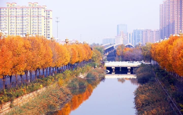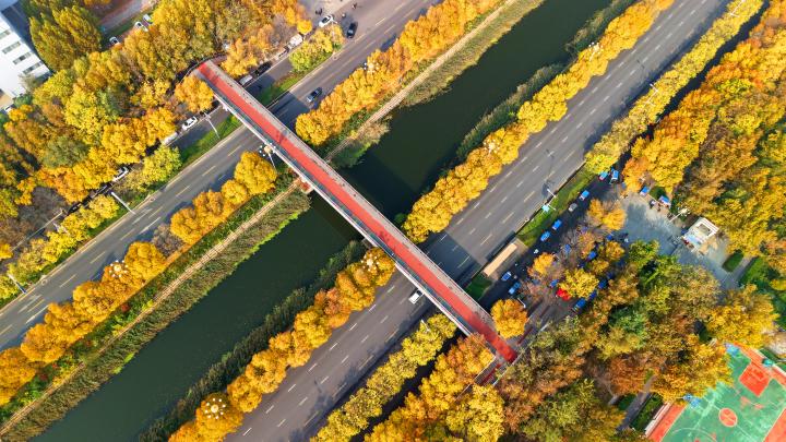 深秋时节,衡水市区前进大街两侧的白蜡树换上金黄“盛装”。高大树冠交织成荫,金黄叶片随风轻舞,为这条城市主干道打造出一段富有诗意的秋日风景线,吸引市民驻足赏景,拍照留念。