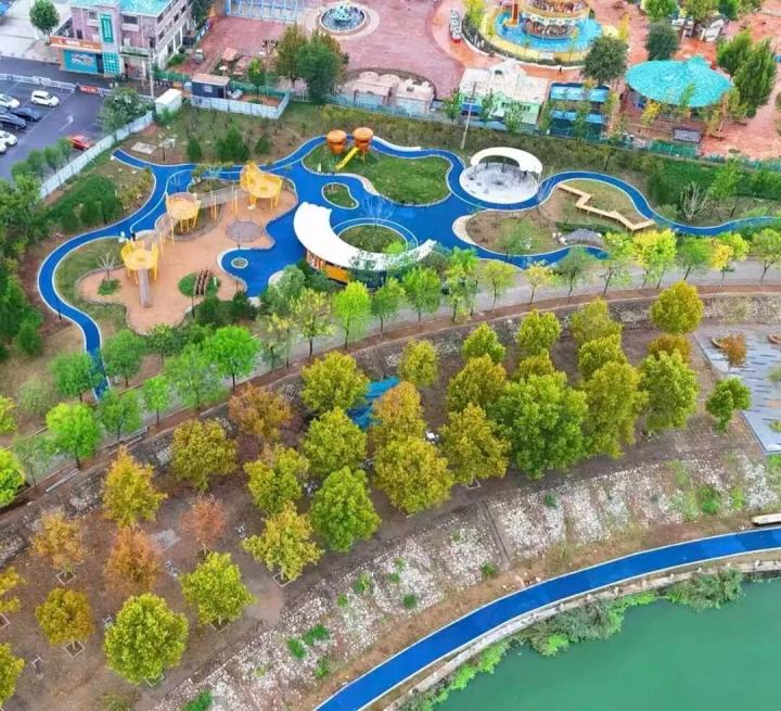 据了解,海绵科普园最具巧思之处是将专业海绵系统与儿童游乐场景深度融合,打造出“可触摸、可互动、可学习”的沉浸式科普空间。在攀爬廊架、松果滑梯等儿童活动区域周边,同步配套下凹绿地与透水铺装设施。孩子们奔跑嬉戏时,能直观看到“雨水如何被绿地悄悄‘喝’掉”“透水地面为何雨天不积水”的生态现象,那些抽象的海绵城市知识,就这样在潜移默化中走进孩子的认知里。