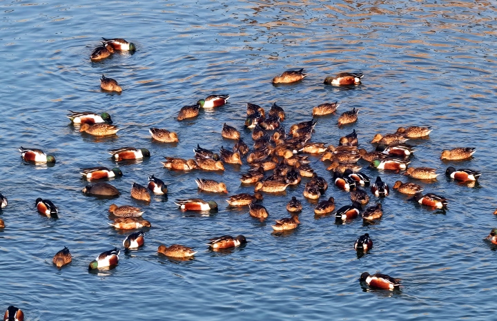 “这是琵嘴鸭独特的集体觅食策略,如此大规模场景实属罕见。”衡水滨湖新区资源保护局副局长张余广介绍,琵嘴鸭因喙部宽大扁平似琵琶得名,其潜水能力较弱,难以深入水底觅食,遂演化出这种高效的集体旋转觅食方式——通过身体游动产生的离心力搅动水流,将水底的浮游生物、小型无脊椎动物等食物卷至水面滤食。