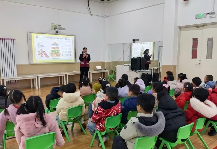 针对学龄前儿童认知特点,学校卫生科工作人员精心选取了绘本故事《如果你把零食当饭吃》作为健康宣教题材,借助色彩鲜明的幻灯片,深入浅出地向孩子们揭示了零食高糖、高脂肪、高盐的特点及其对健康的潜在危害。孩子们在听故事的过程中,直观地认识到零食虽美味,但不能替代正餐,明白了过量食用零食会增加能量过剩风险,导致肥胖,甚至影响身体正常的生长发育。
