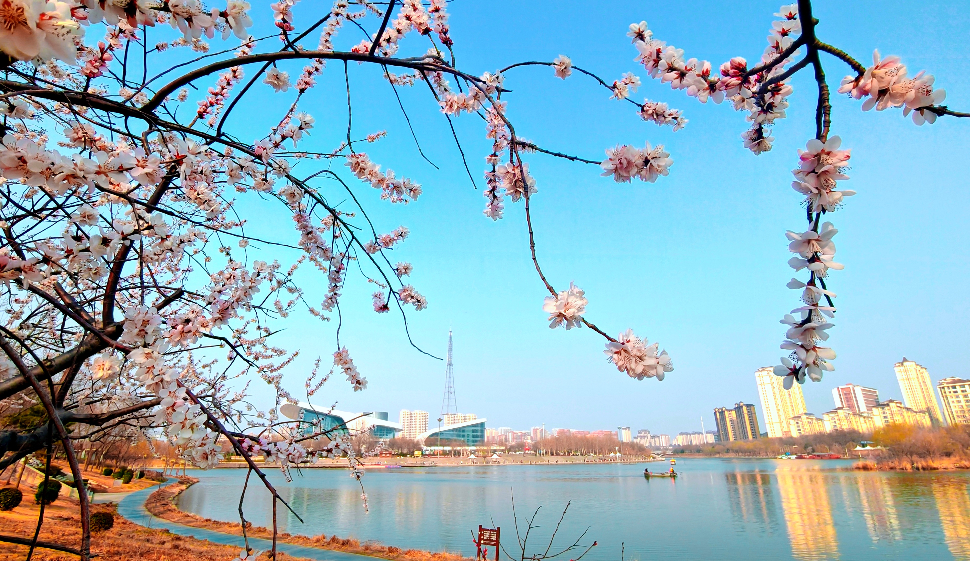 日前,天气渐暖,春意渐浓。衡水市区滏阳河畔,迎春花金黄璀璨、迎风吐艳,山桃花粉白相间、缀满枝头,两色繁花相映成趣,与碧波春水、嫩绿垂柳构成一幅清新动人的春日画卷。市民漫步岸边,赏花观景,尽享融融春光,处处洋溢着生机与美好。