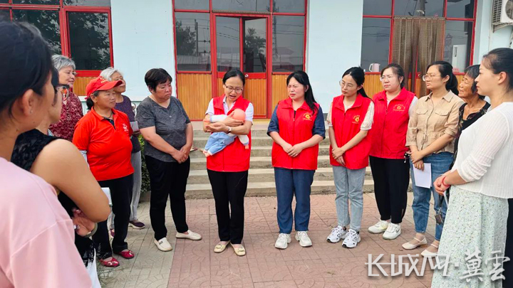 巾帼家政宣讲师向乡村女性讲解家政内容。