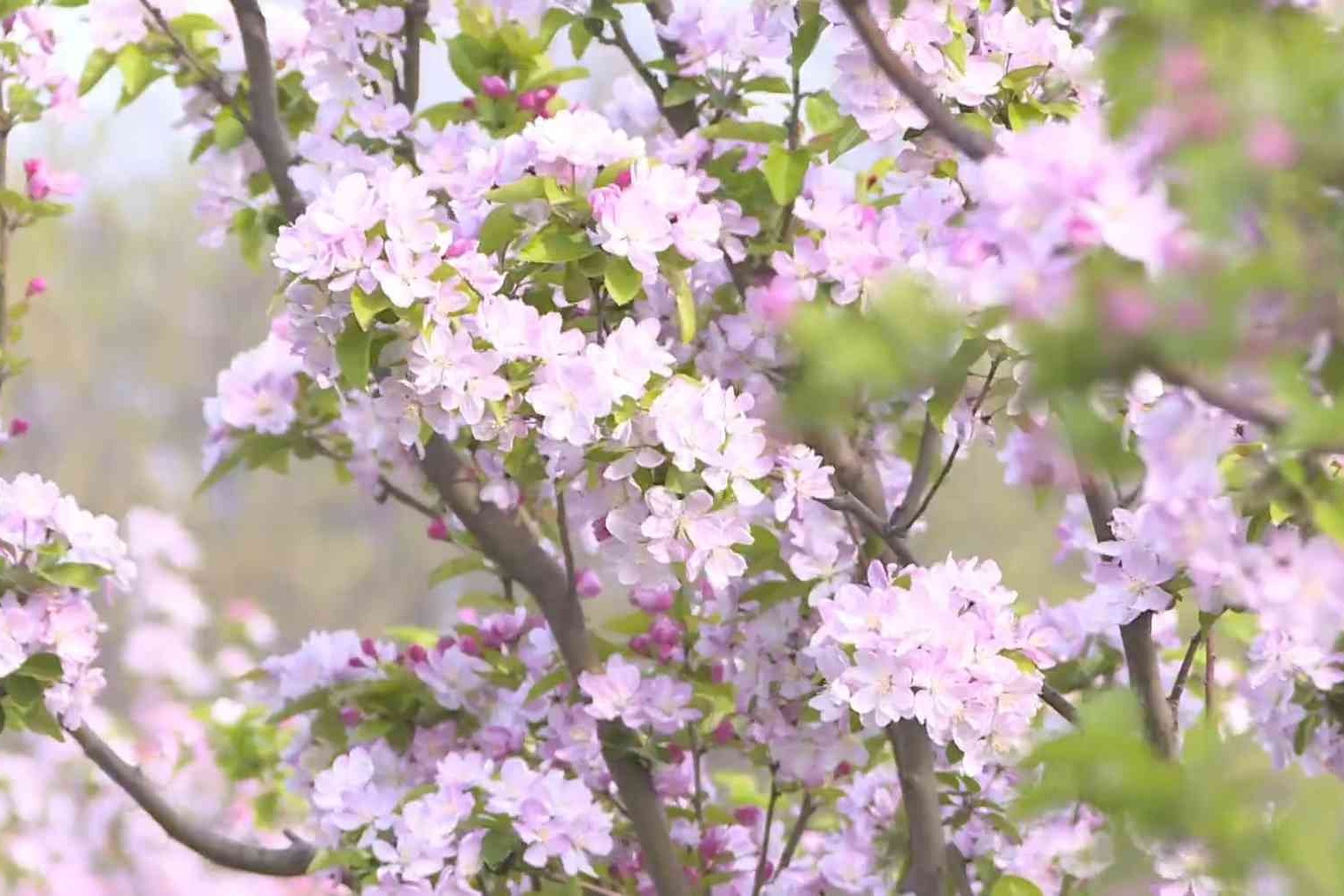 萧何广场:海棠盛放醉春风 河畔美景入画来