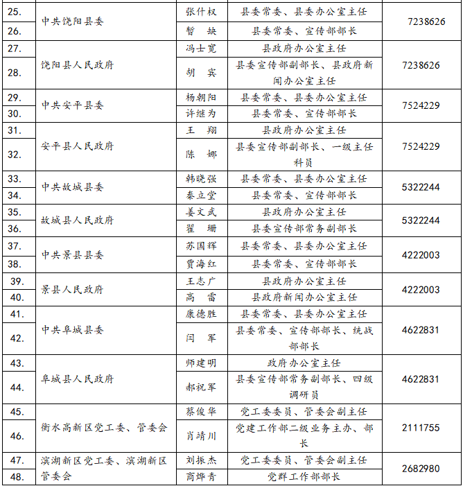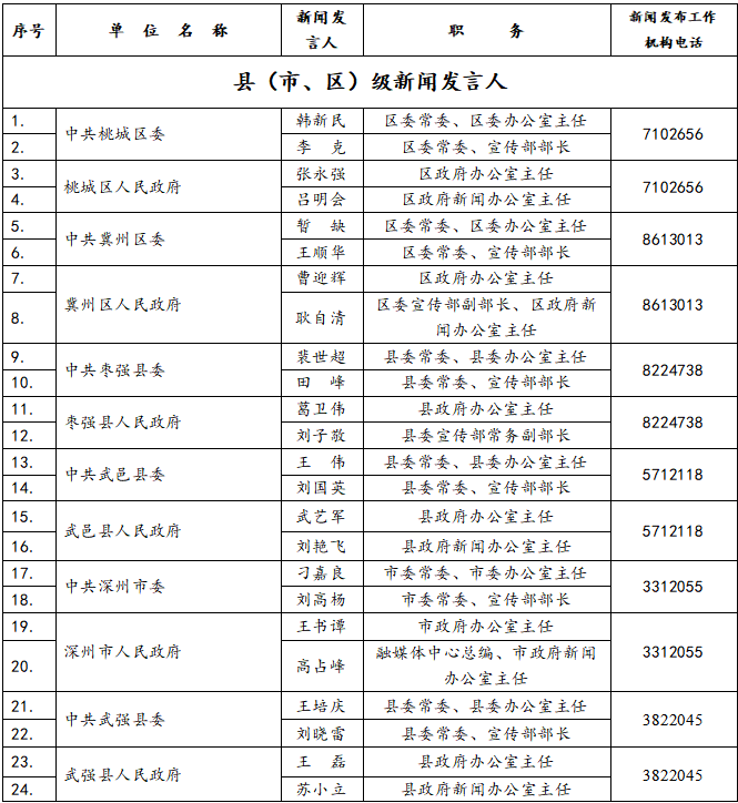 衡水县(市、区)新闻发言人