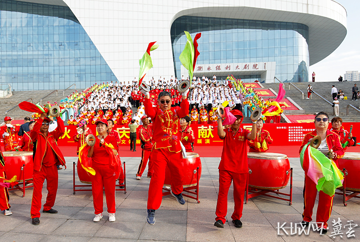 热烈喜庆的《龙腾盛世》鼓舞表演点燃现场氛围。张洪达 摄