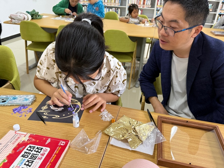 “月圆人团圆 家风代代传”我们的节日——中秋主题活动在孔颖达公园城市书房温馨开展。市图书馆工作人员通过中秋习俗讲解,家风文章分享会,为亲子家庭解读节日文化内涵,借团圆氛围传递家风温暖,让大家感受良好家风对家庭凝聚的作用。在金箔画手工环节,亲子家庭纷纷发挥丰富的想象力,共同创作中秋主题金箔画,这不但锻炼了孩子们的动手能力和创造力,也让孩子们深刻领悟到从小要守规矩、重家风,将优良家风的种子播撒在幼小的心田。