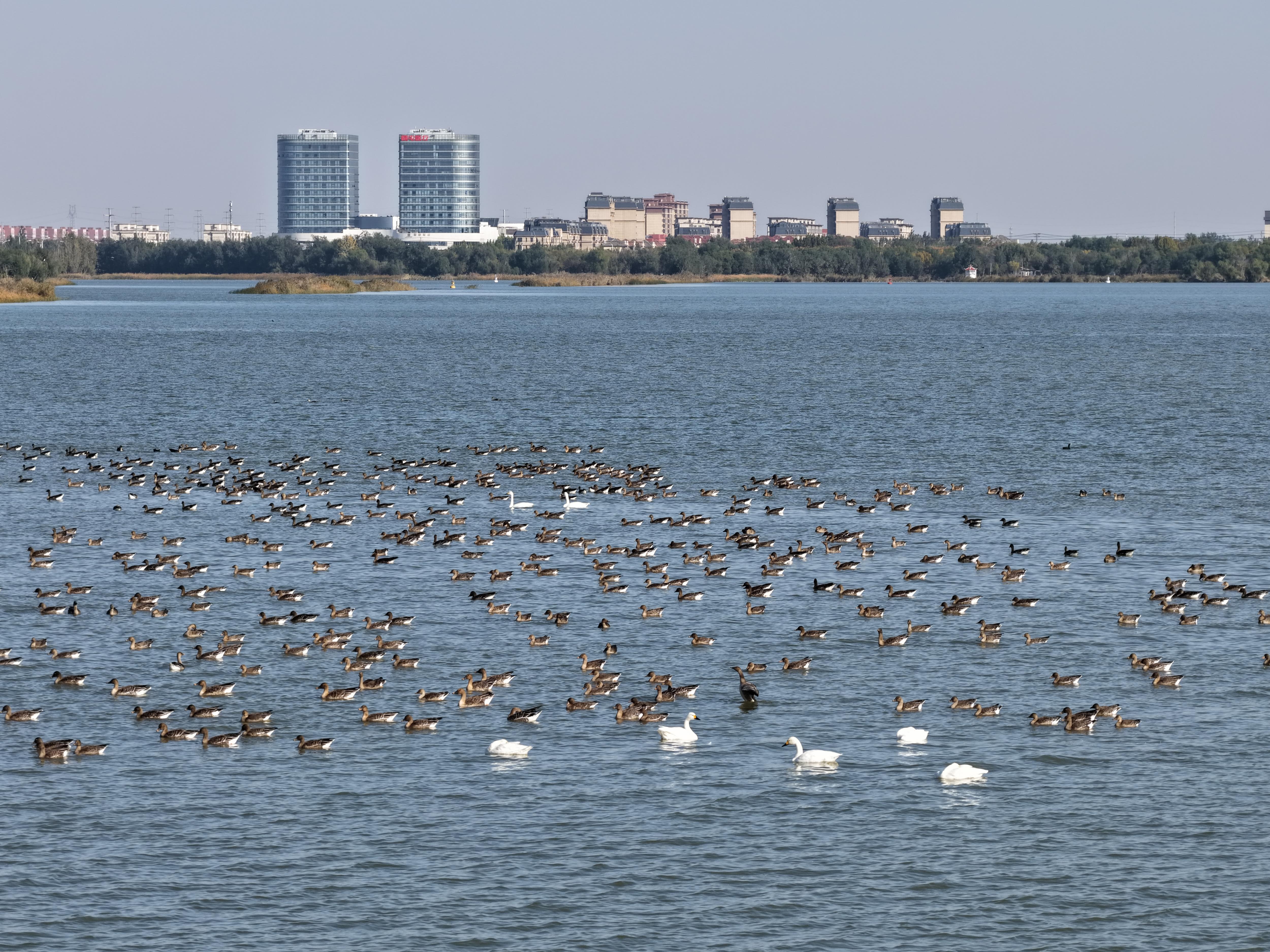 深秋湖光映白羽 衡水湖迎来首批迁徙小天鹅