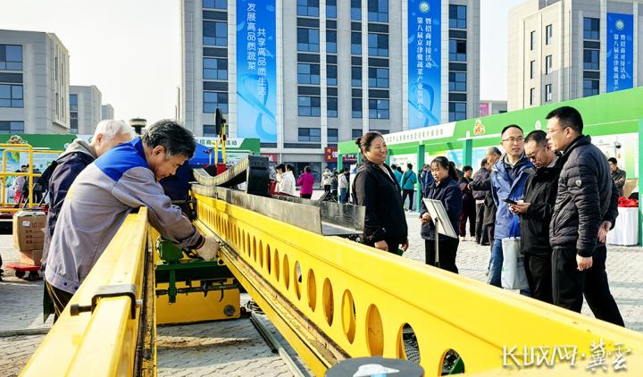 多领域成果展示,赋能“菜篮子”。大会集中展示了精品蔬菜、种子种苗、设施建造、农资、农机、金融等多个领域的2000余种农产品及各类创新成果。在精品蔬菜区,鸡泽辣椒、平泉食用菌、冀州天鹰椒等特色展品缤彩纷呈;在种子种苗区,京研益农、天津科润等企业的优质品种吸引众多种植户咨询;在农资装备区,性诱剂、熊蜂授粉等绿色生产物资与智能温控装备、智慧农机等集中亮相,实时演示水肥一体化灌溉机、自走式蔬菜打药机、采收机等装备的作业流程,通过“看得见、摸得着、信得过”的方式,助力蔬菜产业从“传统种植”向“智慧种植”跨越。