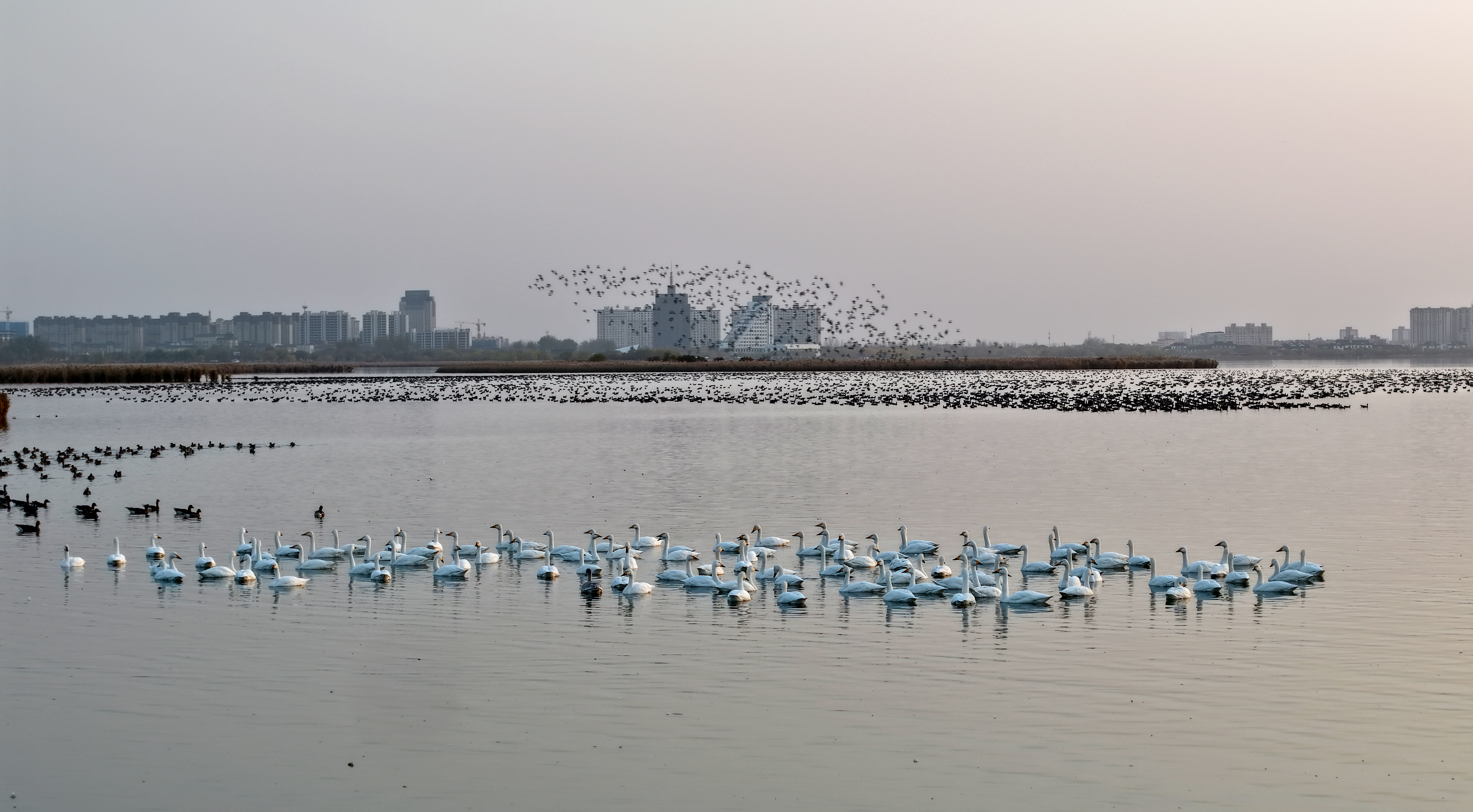 衡水湖是华北平原保持完整湿地生态系统的国家级自然保护区,享有“东亚蓝宝石”“京津冀最美湿地”等美誉。截至目前,这里观测记录到的鸟类已达336种,每年有60余种鸟类在此越冬,数量最高时逾10万只。