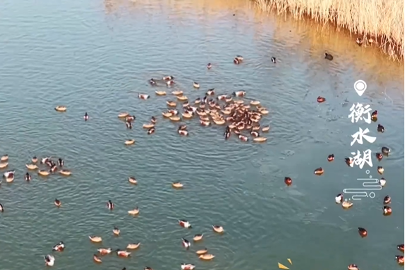 衡水湖:千余琵嘴鸭上演“集体觅食秀”