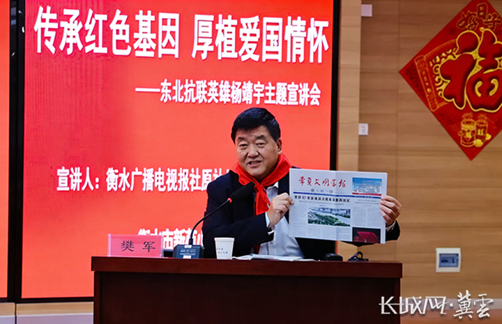 长城网·冀云客户端讯(记者 常虹 通讯员 刘柳岐)连日来,中共衡水市委宣传部红色宣讲员樊军走进河北衡水中学、衡水职业技术学院、衡水市新苑小学等30余所学校,带领广大师生重温东北抗日联军英雄杨靖宇浴血奋战的光辉历程,共同感受信仰的力量、感悟家国的情怀。