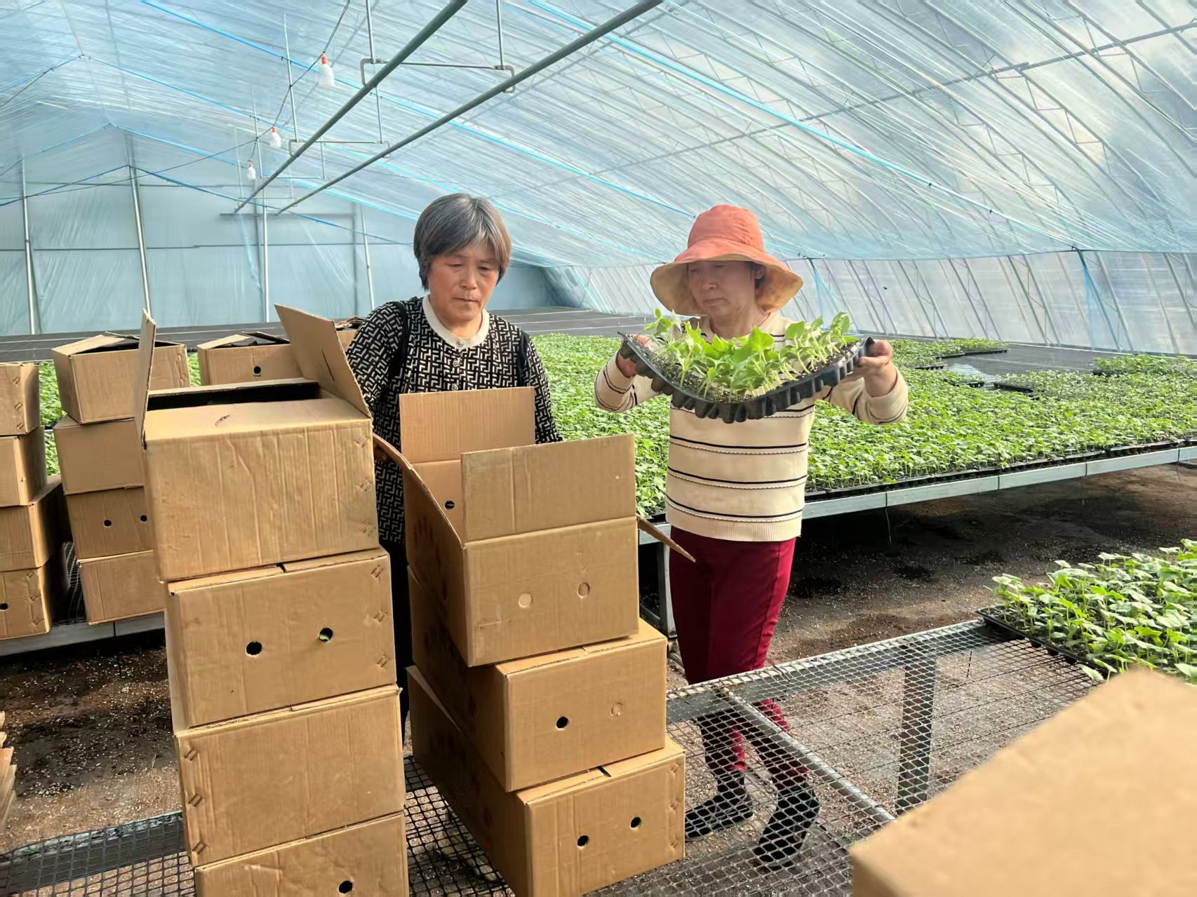 “姗姗,我这茬西红柿收完了,就等着你的瓜苗下地,今天能送到吗?”正在指挥工人搬运种苗的基地负责人杨姗姗,不时收到种植户们的“催苗”电话。