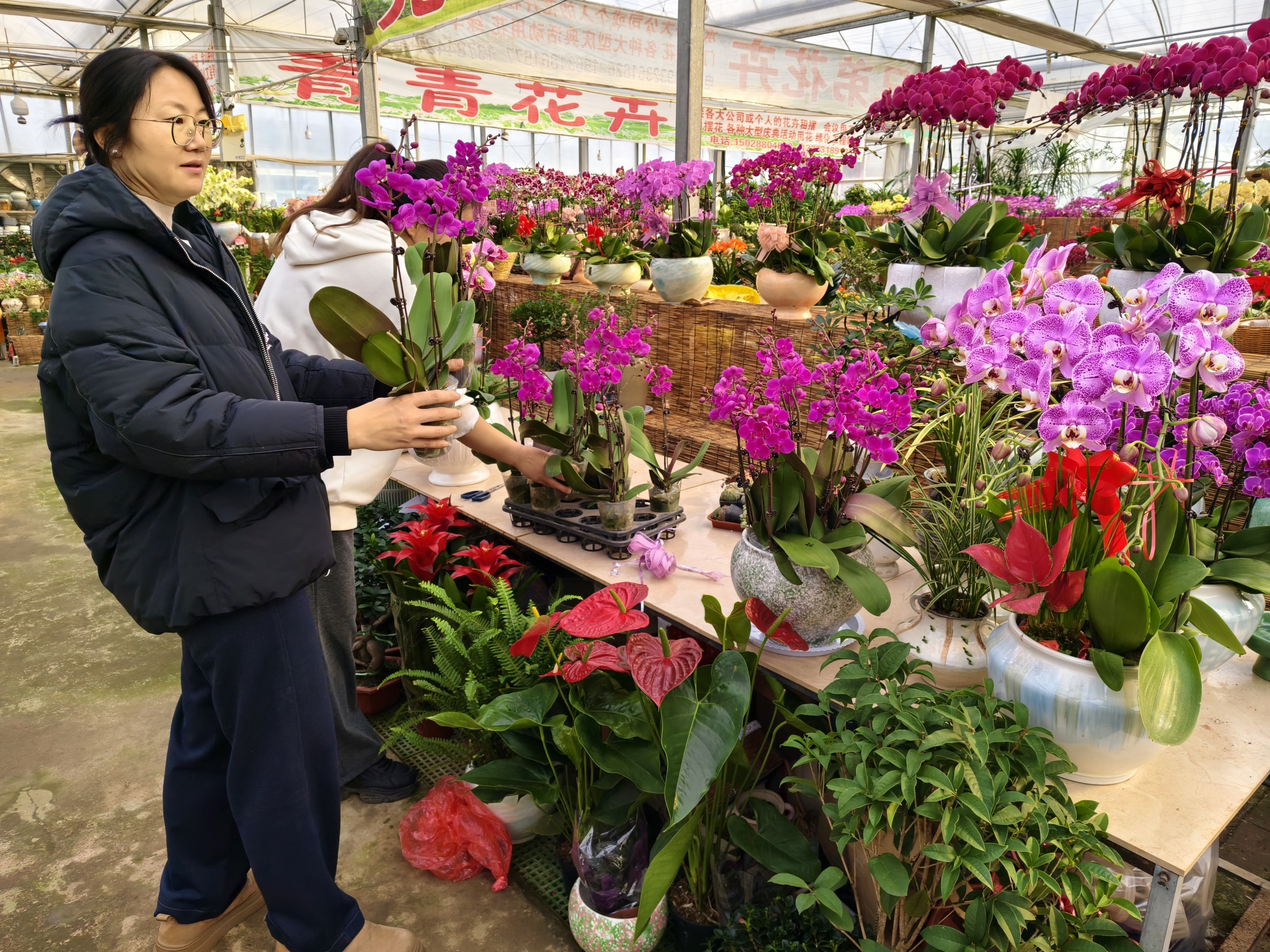 “大年初三就有不少市民过来逛花市,这几天的客流量比平时翻了一番还多,从腊月初我们就开始集中备货,就是为了保障春节期间的供应。”衡水花卉园负责人盛经理忙着引导客流,向记者介绍道,园区提前储备了数十个品种,主打红、粉、橙等喜庆色系,精准契合市民春节装点家居、走亲访友的需求。