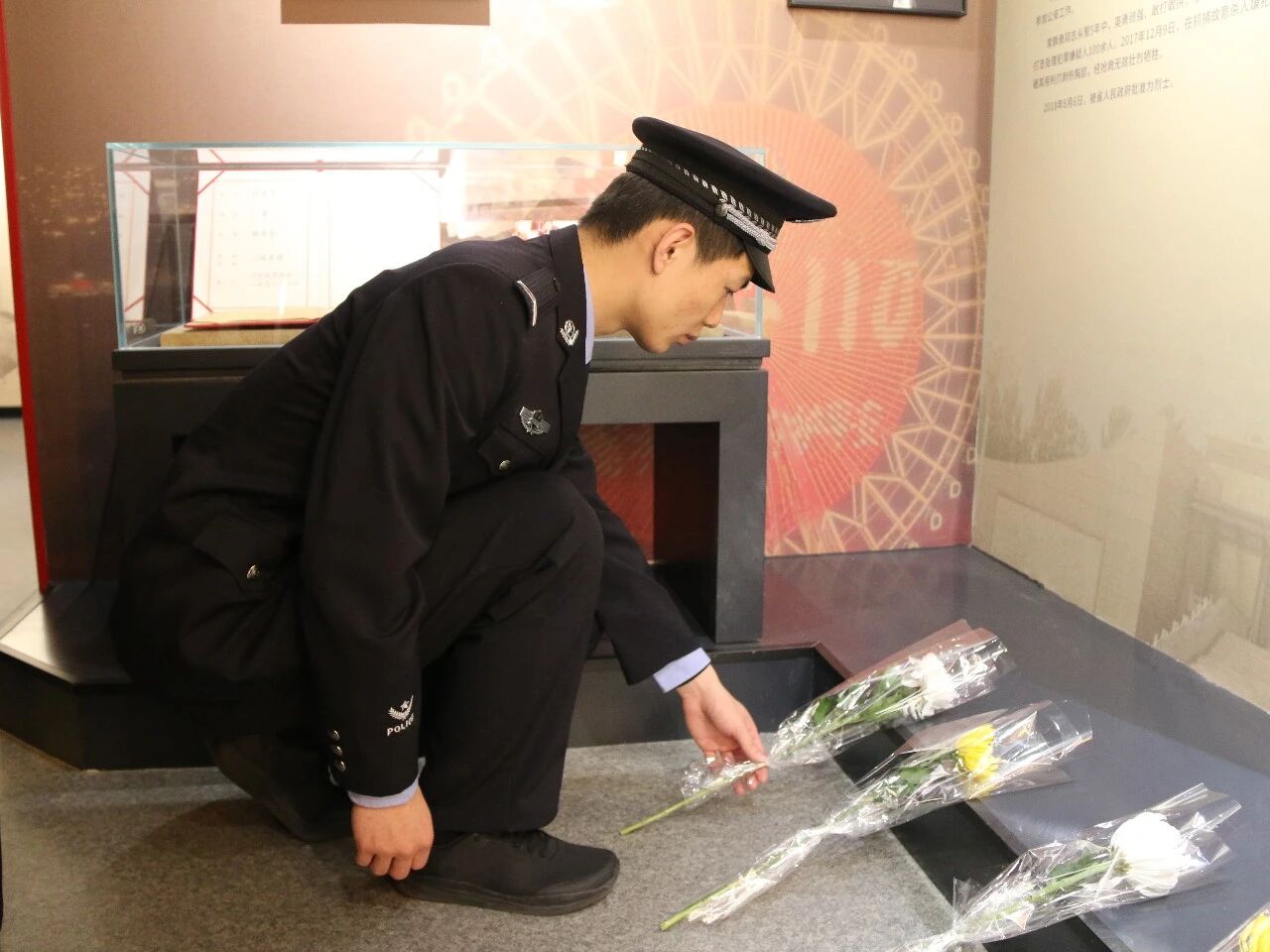 活动现场,市县两级公安机关青年民警代表集体肃立,向公安英烈鞠躬默哀,并献上手中的鲜花。