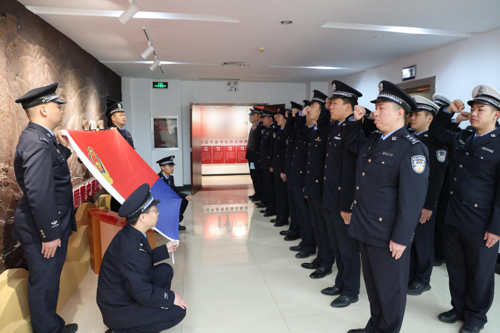 在警旗前,青年民警集体重温入警誓词,庄严表示:要以公安英烈为榜样,把对英烈的追思转化为履职尽责的强大动力,以更加饱满的热情、更加昂扬的斗志投身公安工作,用实际行动告慰英烈、守护平安。